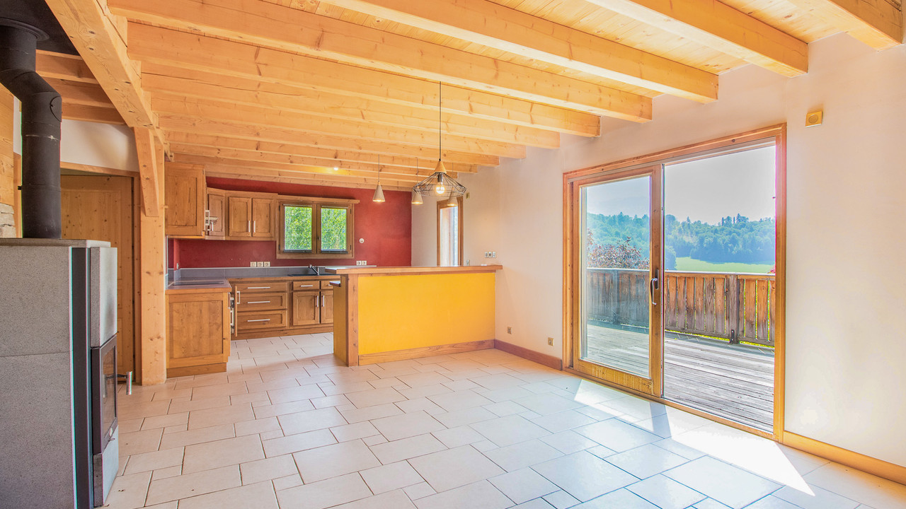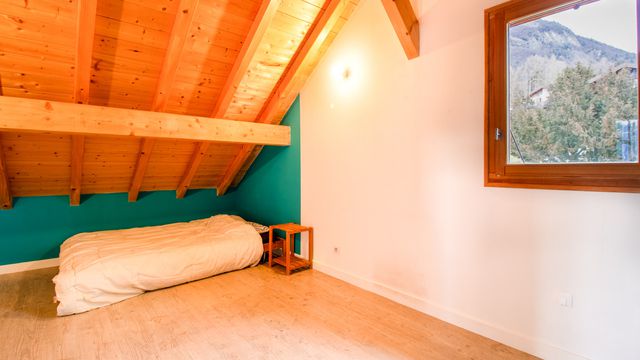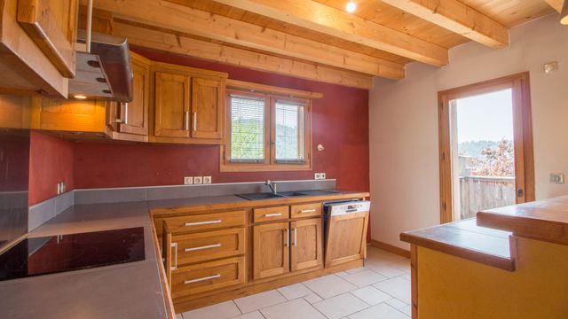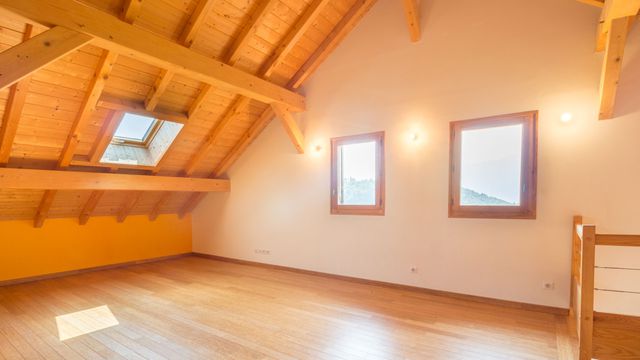 A34583SLE73 - This south facing 3 bedroom chalet offers stunning panoramic views in a quiet environment. With 6 rooms, a large terrace of almost 35 sqm, a large basement/garage and a beautiful garden, the property was built using environment friendly materials.
