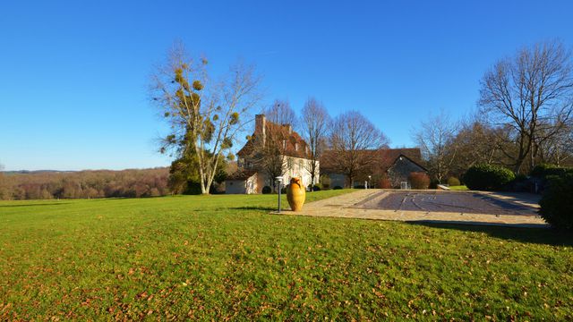 A34036SUG24 - An ancient and well documented noble property of proven authenticity with a list of families with coats of arms that go back deep into the 1500s and has been beautifully restored and maintained on its original domain of nearly 16 hectares. The house has 4 huge bedrooms, 3 up-to-date bathrooms, a large kitchen and sitting room that both open onto a covered terrace that overlook the park and forest with views beyond. In front of the manor is a courtyard bordered by large outbuildings, and a source. There is also a large swimming pool with a pool house and two large ponds. A superb and manageable period, prestige, property, ready to move into.