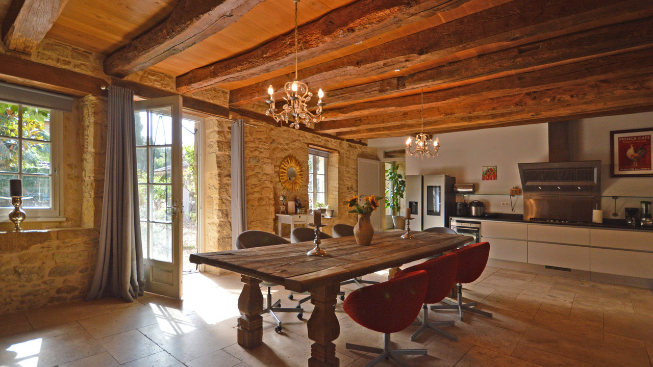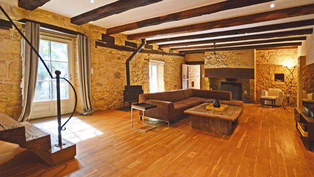 A23603SUG24 - A large, authentic and pretty Périgordian farm comprising of a main house and guest house that surrounds a large courtyard with an architecturally designed and expensively renovated interior using the finest quality materials and craftsmanship the region has to offer. Exteriorly the property has changed little from the cadastre Napoléon of 1811 yet within is a remarkable combination of old stone and exposed beams restored to a level of quality rarely seen elsewhere not to mention a vast investment in a combination of the latest solar and geothermal system bringing this large property down to zero cost heating. The property also has an acre of fenced landscaped garden close to the house with an automatic entrance gate and a gated 3 car garage. In short a luxury country home of old stone in the rolling hills high above the rocky gorge of the Auvézère.