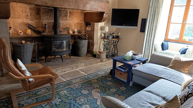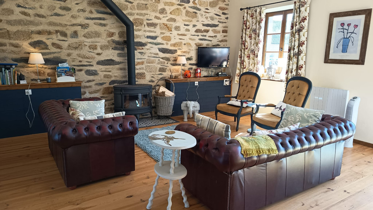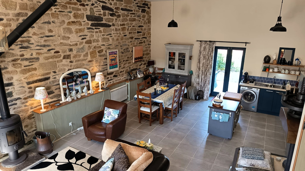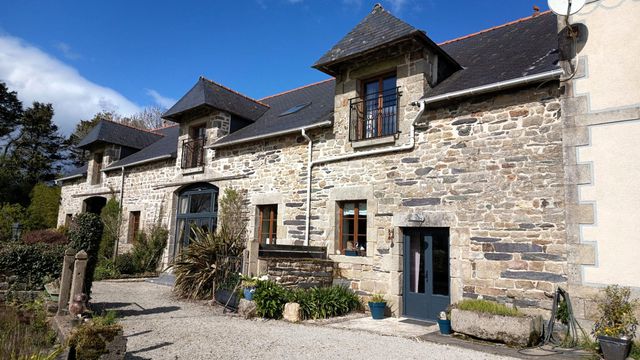 A43932EDA29 - This beautiful property has been carefully and thoughtfully renovated by its current owners. Ideally situated approximately 10 minutes from the magnificent beaches of the bay of Douarnenez and from the medieval town of Locronan, the property has very successfully hosted guests as a chambres d'hôtes and gîtes for several years. Currently consisting of the main house and 2 gîtes, planning permission has been granted for a 3rd gîte of 5 bedrooms and services to this outbuilding have been installed. In addition, planning permission has previously been granted for the conversion of a further outbuilding into 3 2-bedroomed gîtes. The plans are still available for this project, making further application for planning permission more straightforward. Good sized gardens and land, complete with a pétanque pitch, a childrens' play area and beautiful views towards the Menez Hom, are the perfect place to enjoy a summer's evening after a day at the beach! This is a property not to miss!