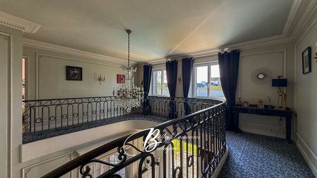 Dès l'entrée, le ton est donné : escalier monumental en ferronnerie, cheminée en marbre, moulures, hauteur sous plafond généreuse? La maison déploie des volumes rares et une élégance intemporelle.