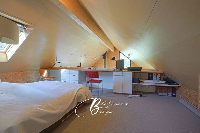 Troisième logement : Actuellement utilisé en atelier d'artiste, il comprend une grande pièce orientée à l'est avec cuisine ouverte, une salle d'eau avec wc. Une chambre en mezzanine à l'étage.