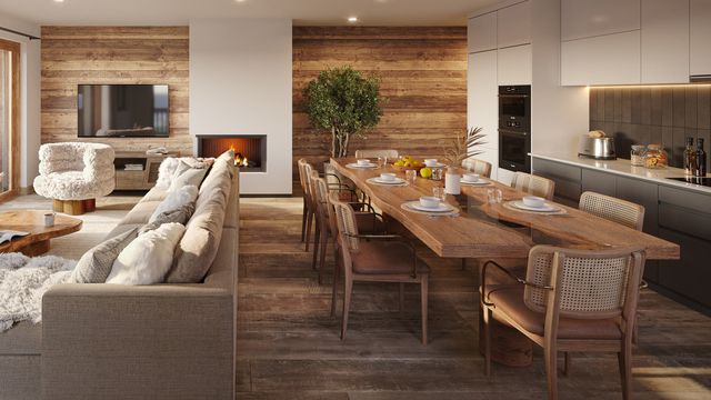 A43264EH73 - Experience modern Alpine living in this elegant three-bedroom apartment, perfectly located just 250m from the slopes and the centre of St Martin de Belleville. The bright open-plan living area opens onto a generous terrace with sweeping views over the Belleville Valley. Designed for year-round mountain life, this residence offers style, space, and tranquility in the heart of the Three Valleys.