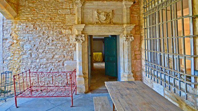 An unspoilt, authentic, medieval to renaissance castle with outbuildings above a river valley within