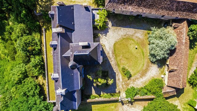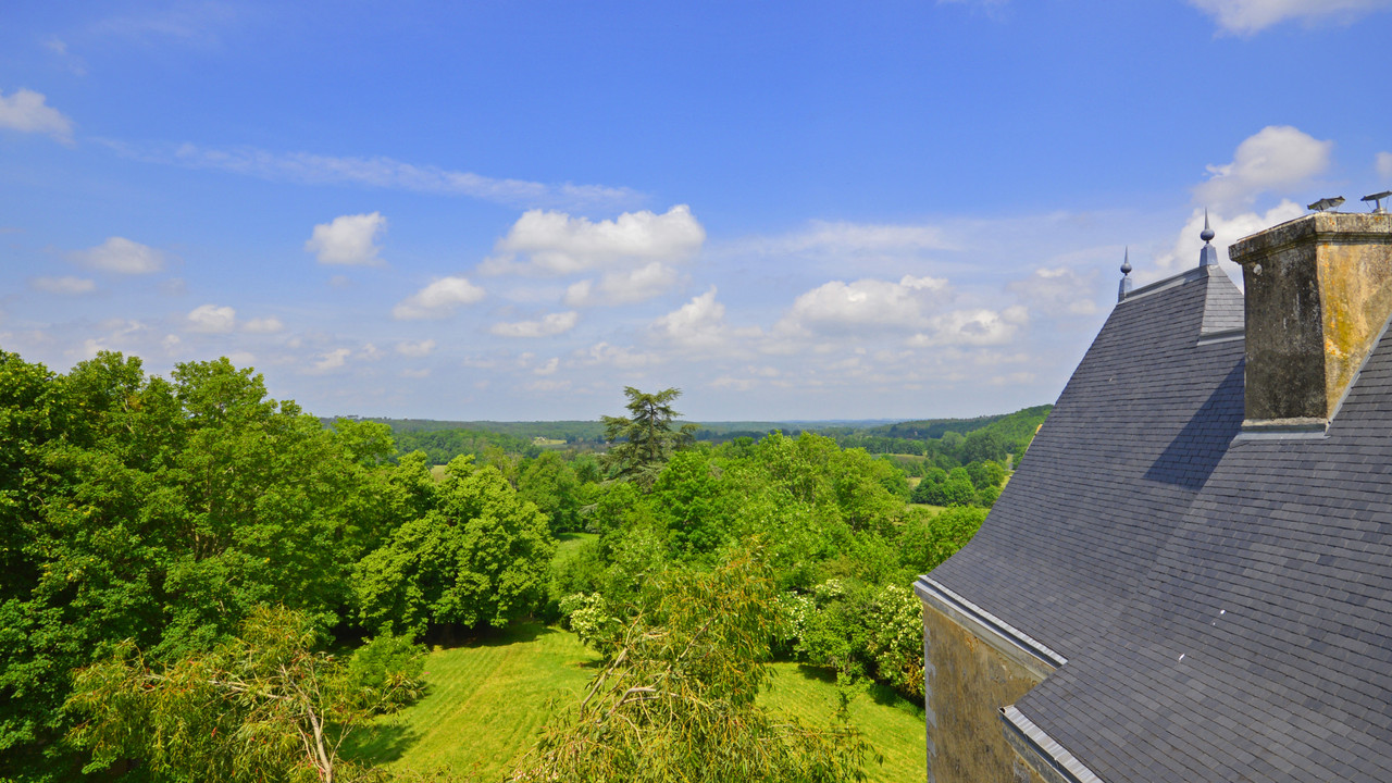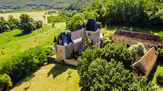 A20775SUG24 - High on 25 ha of forest and meadows is this rare and authentic stronghold of the past Comptes de Marqueyssac and home to the present family for 450 years. The main structure and roof are in good condition having been recently reviewed and restored yet maintaining a traditional mellow, aged patina dripping in history. The castle is medieval and later remodelled mainly during the renaissance and wars of religion when the crenelations at the top of the main tower were removed, but there are a number of loopholes dating from this period. Interiorly, it is simple and unspoiled with a rustic kitchen, original parquet flooring, exposed beams, stone fireplaces and staircases. Around the court, there is a mixture of former dwellings with carved stone windowsills and doorways attached to barns.