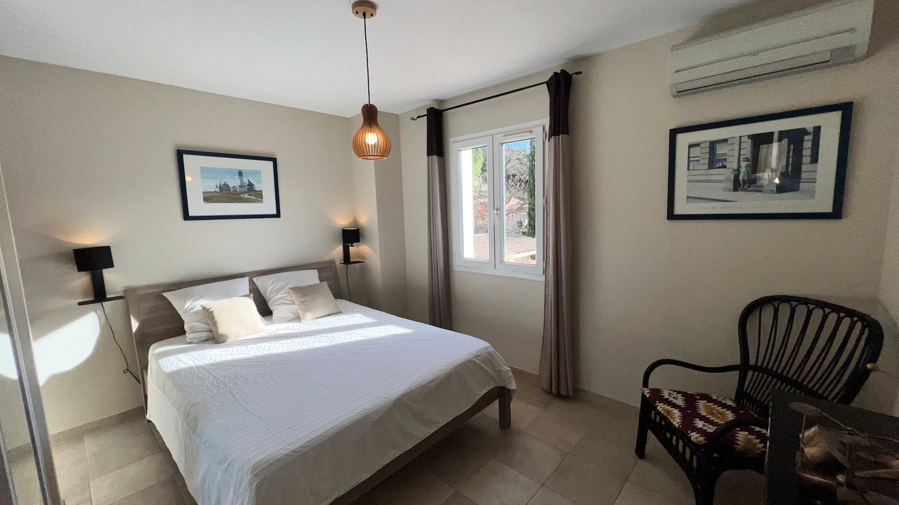 pleasant shaded terrace to the South, 1 large master bedroom, with private