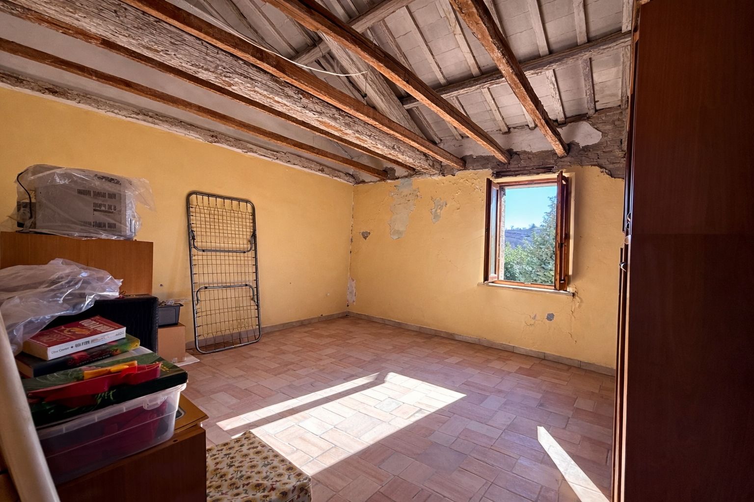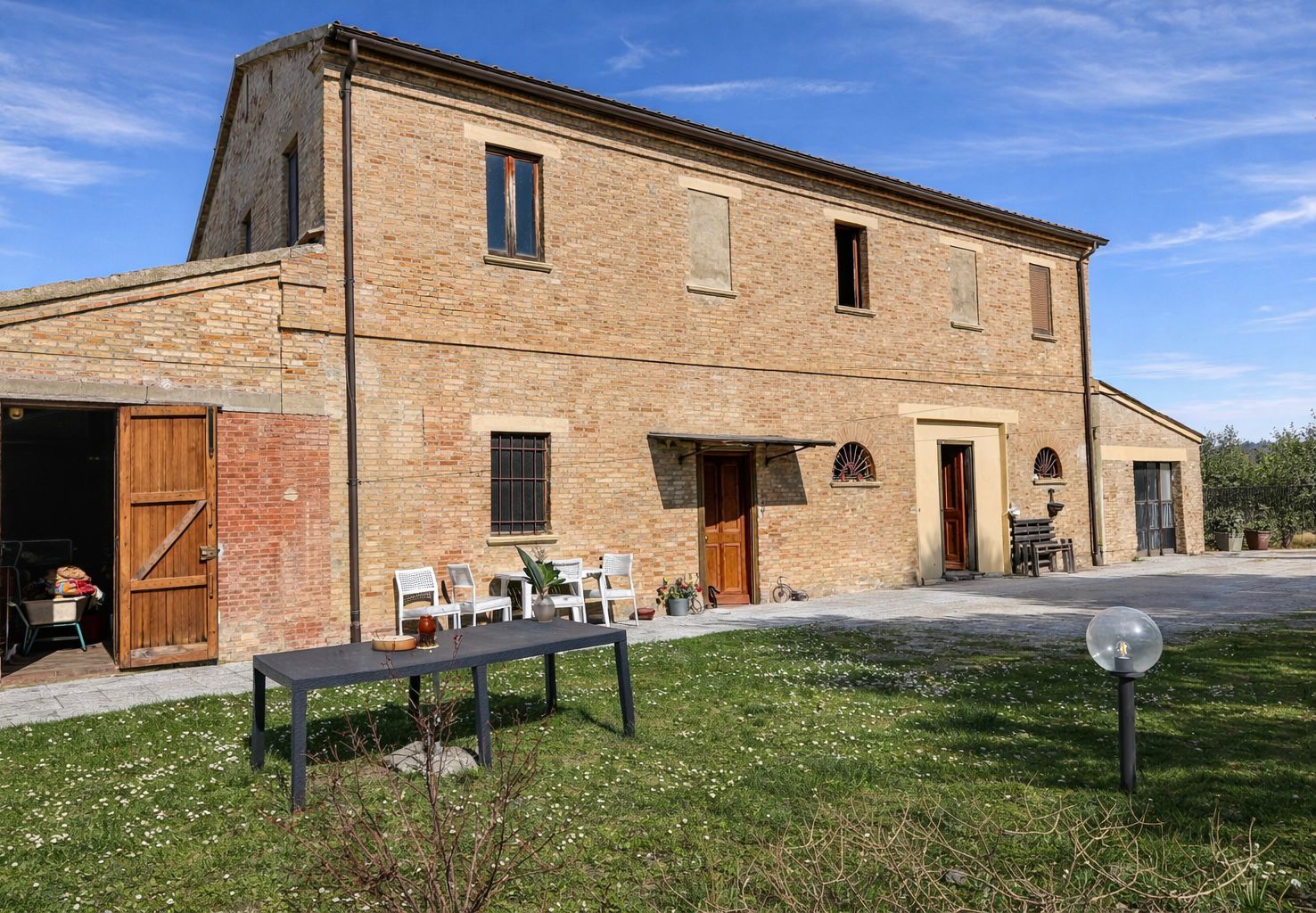 Obwohl das Haus einer umfassenden Renovierung bedarf, bietet es eine außergewöhnliche Gelegenheit für alle, die ein Objekt mit Charakter und großem Entwicklungspotenzial suchen. Die Lage ist ruhig und ländlich, jedoch gleichzeitig sehr gut angebunden. Städte wie Urbino, Pesaro und Fano sind schnell erreichbar, und die Adriaküste liegt nur etwa 20 Minuten entfernt.
