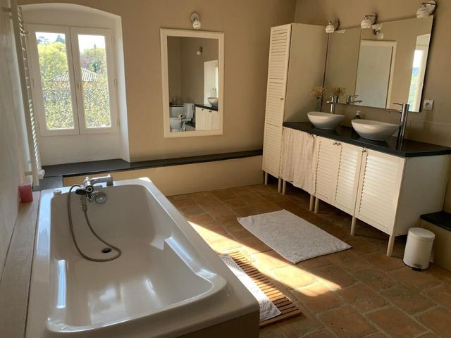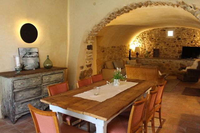 „MAS LES ROMARINS“ ist ein typisches südfranzösisches Bauernhaus aus Stein (Mas) mit Ursprung im 17. Jahrhundert, bietet aber allen Luxus und alle Annehmlichkeiten von heute. Ein nach Süden ausgerichteter, eingezäunter Garten von 1290 m², der Charme der Steinmauern und der Duft von Lavendel und Rosmarin. Steinbögen schmücken die Küche, den Fitness-/Billardraum, das Esszimmer und das Wohnzimmer mit dem großen Erkerfenster. Der Kamin des Holzofens sorgt für eine warme Wohlfühlatmosphäre. Von der Terrasse und den Schlafzimmern genießen Sie den Blick auf den Garten, einen ruhigen Außenbereich inmitten der Natur mit seinen prächtigen Blumen und dem beheizbaren 6 x 3,3 m großen Pool.