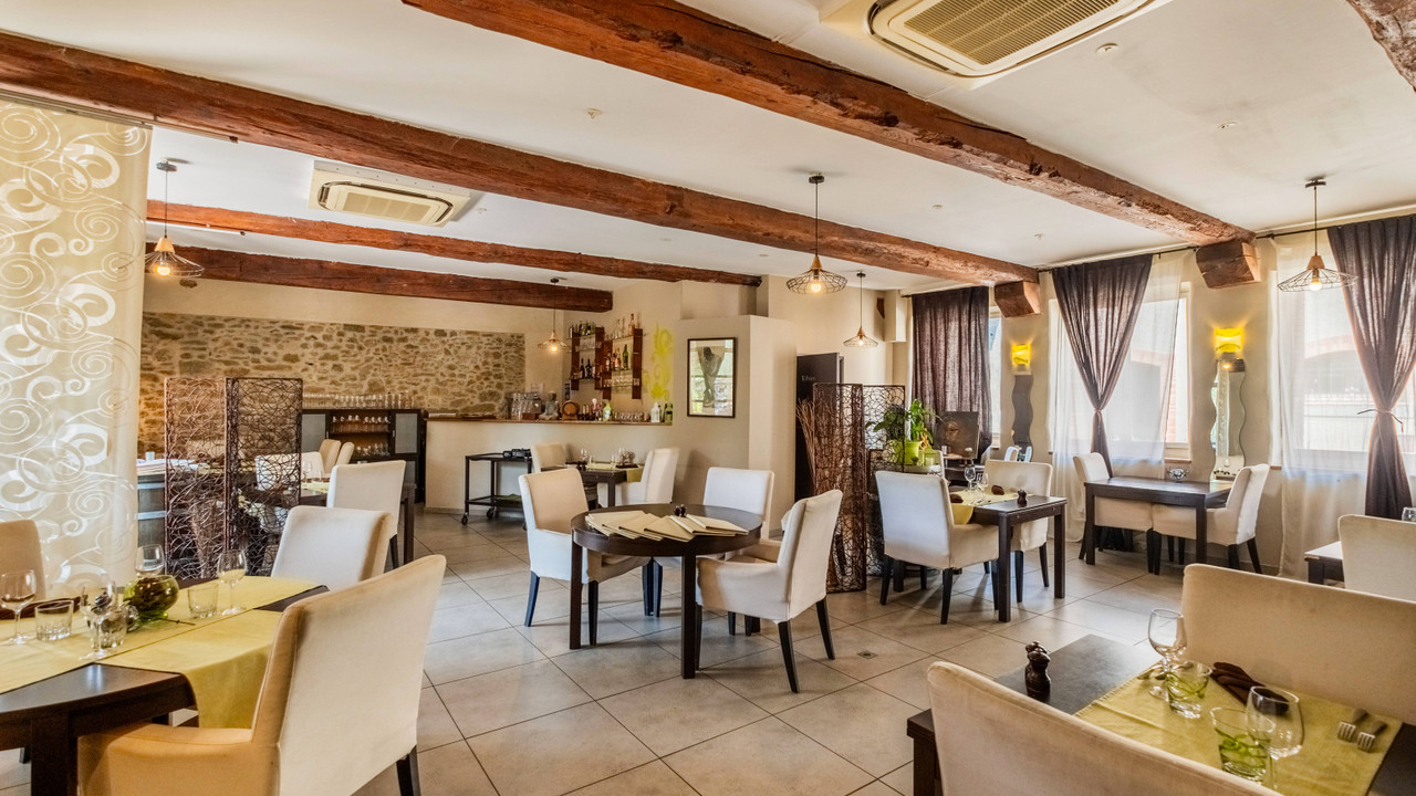 The excellent on-site gastronomic restaurant, complete with an outdoor terrace, is perfect for dining. Owners will benefit from a three-bedroom apartment above the restaurant, a separate five-bedroom owner's apartment with private garden, plus a 34m² studio.