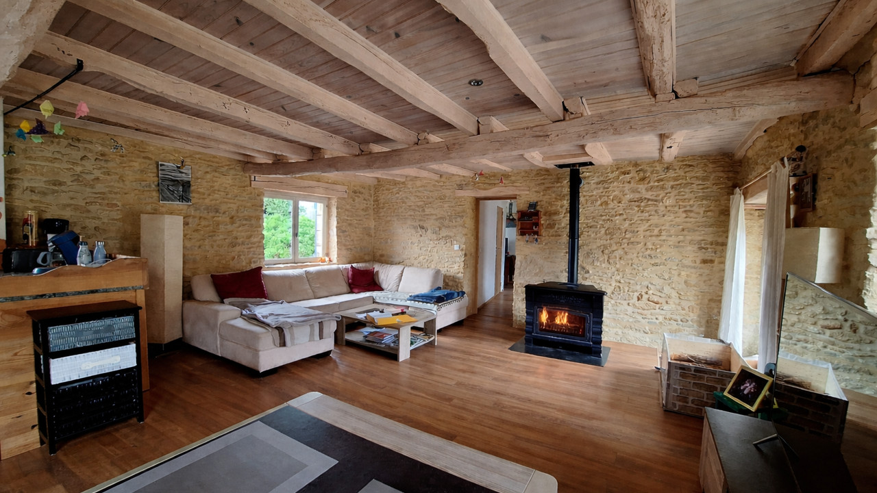 The property includes a main house adjoining its stone barn, two independent gîtes, and an 9 x 4 m swimming pool