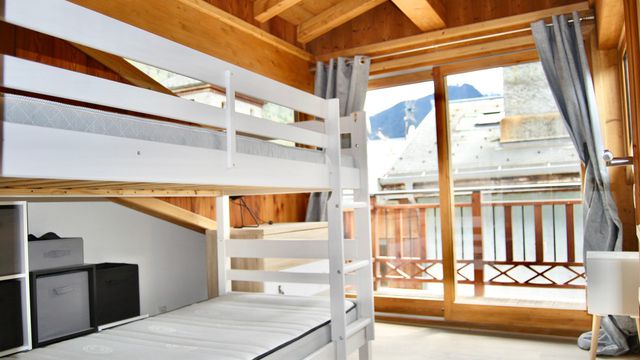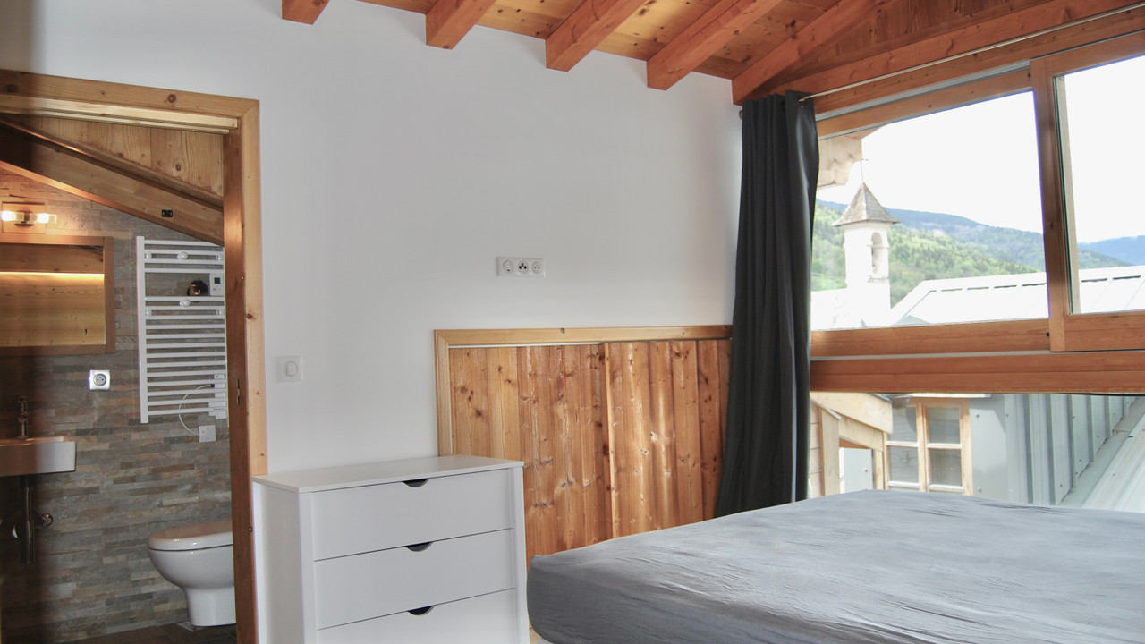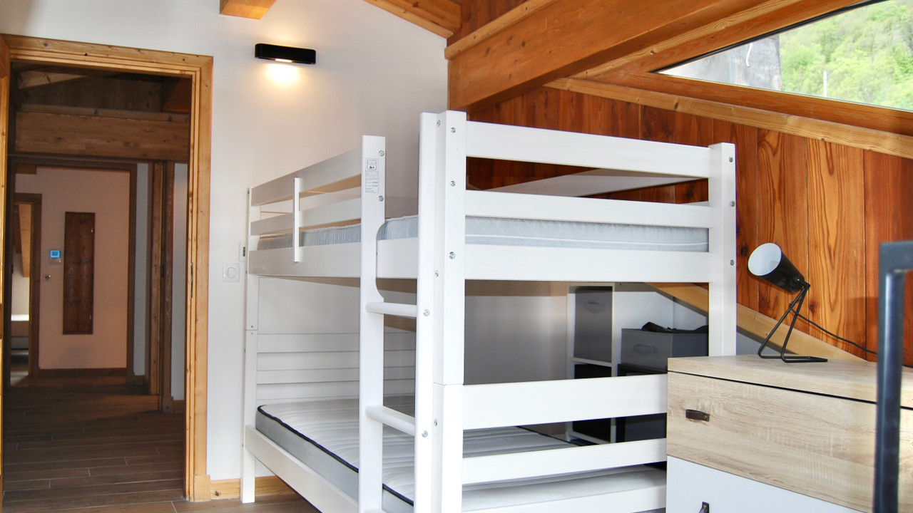 The apartment features three bedrooms, two with en-suite bathrooms equipped with a shower, washbasin, and WC. The third bedroom shares an additional separate bathroom (3rd bathroom) with a shower, washbasin, and WC with the walk-through 'Coin de Montagne' equipped with a double sofa bed and a private TV. All of the bathrooms have towel warmers & the whole apartment has underfloor heating with individual thermostats.