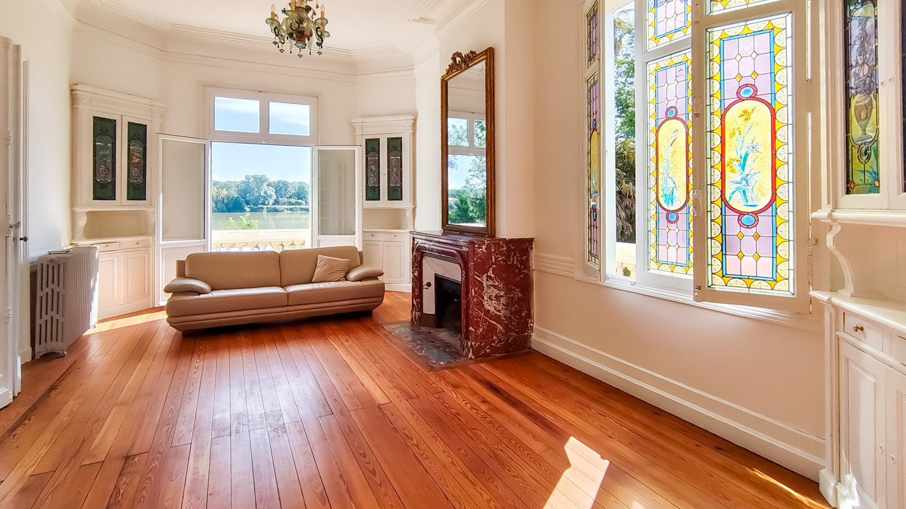 A37112BTU33 - Nestled in a wooded park with completely unobstructed views of the Garonne river and elevated on the sizable garden-level cellar, this 19th century residence has been completely renovated while maintaining the traditional finishes of the time.