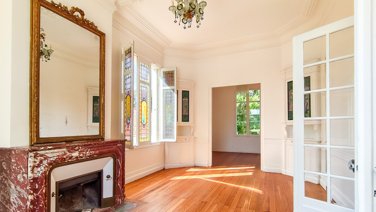 A large entrance with cement tiles, beautiful high ceilings serving a double living room, dining room, library/lounge, and kitchen seduces you with generous volumes. Upstairs, 4 bedrooms each with its own bathroom complete this magnificent property. An outbuilding (partially renovated) offers an independent turnkey one-bedroom apartment with its own terrace above the garage.