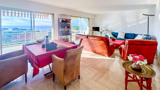 Live the dream of the South of France with this fully renovated, top-floor apartment offering breathtaking panoramic sea views over the Bay of Cannes and the Lérins Islands.