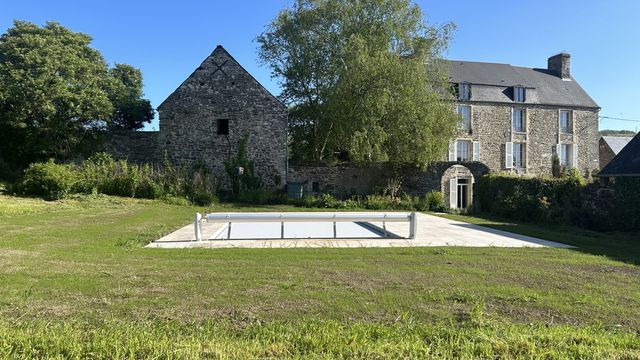 A38824VIC14 - Situated in a charming village, this classic stone "manoir" enjoys stunning views over the Swiss Normandy countryside. Set within pretty gardens, the property includes historic outbuildings; one formerly a bakery, a garage and a large stone building which currently is used as a workshop and pool house. The outdoor heated swimming pool has recently been professionally installed.