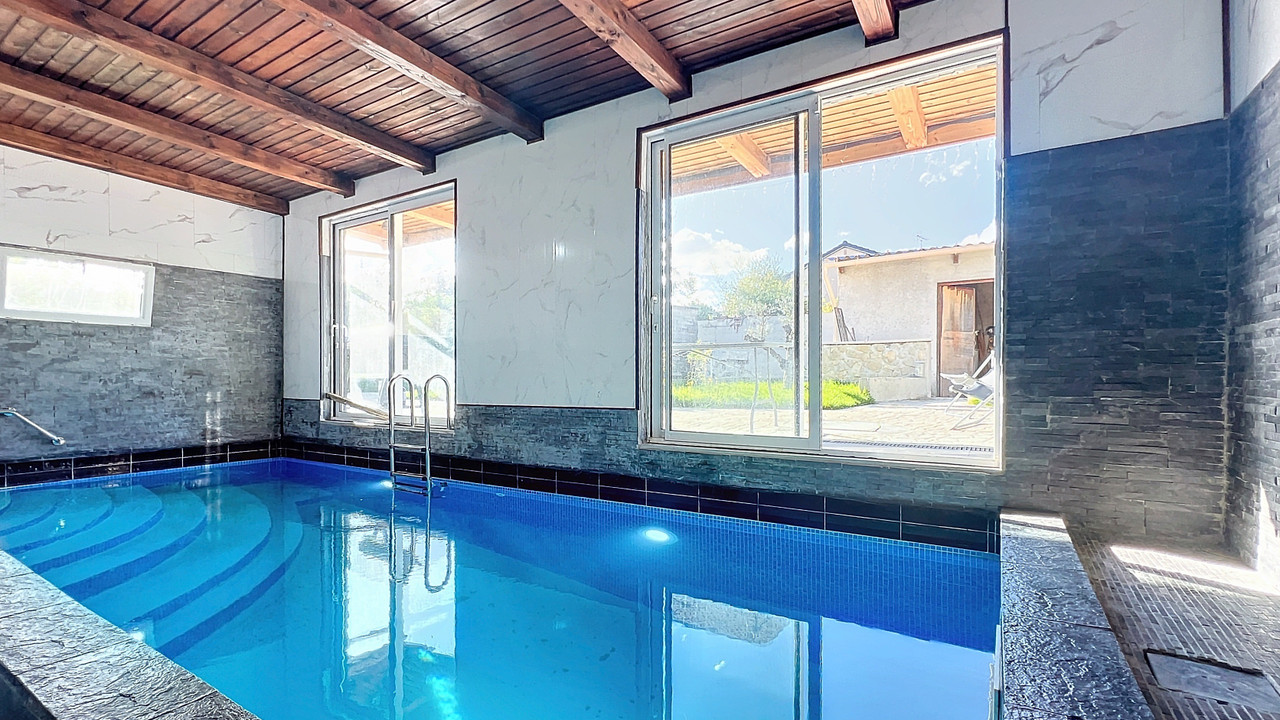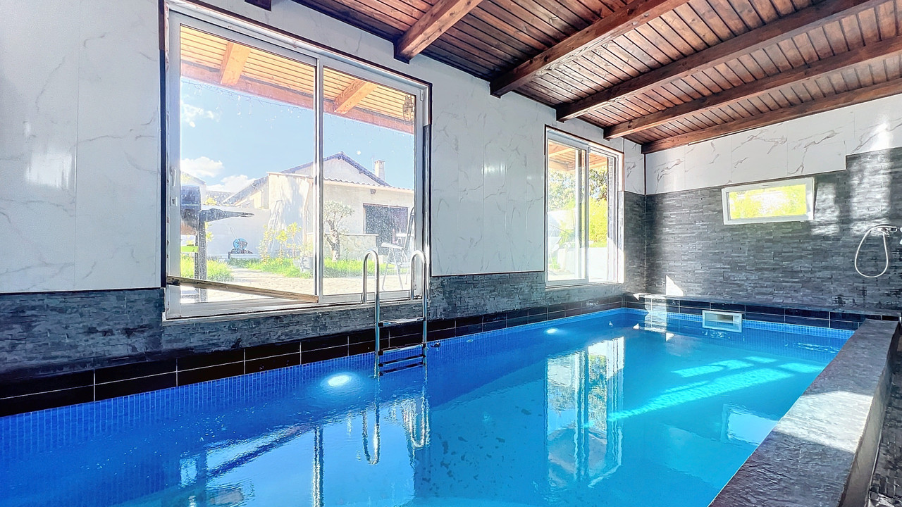 On the garden level, a full floor includes a relaxation room, laundry room, boiler room, shower room, and direct access to the heated indoor pool (7 m x 3.5 m).