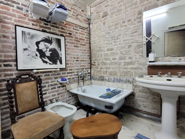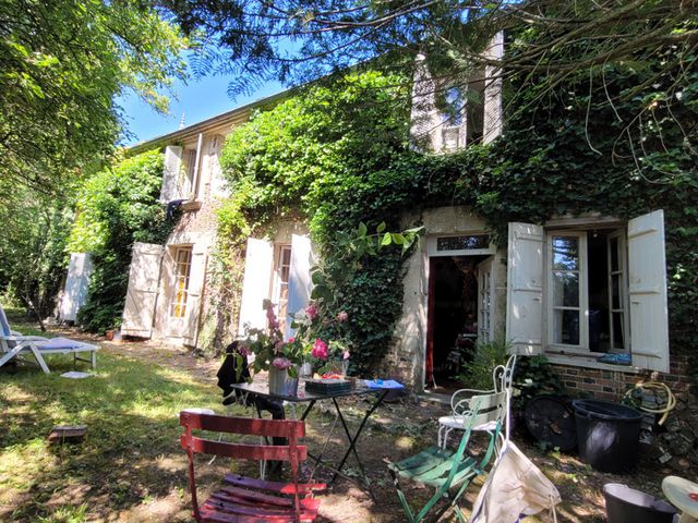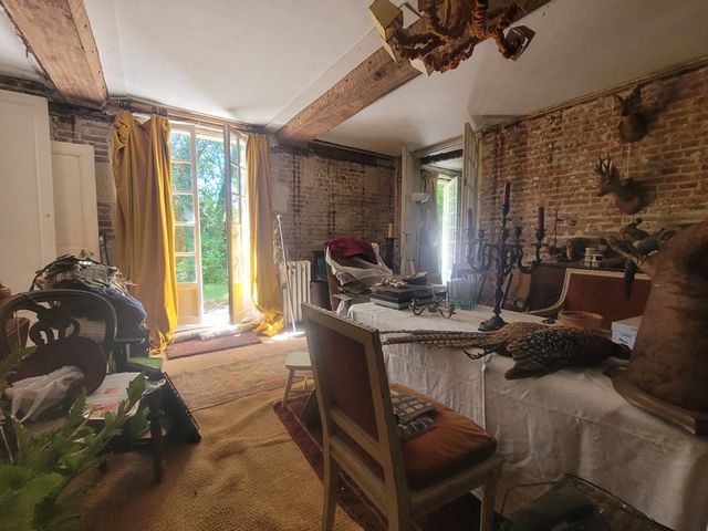 Entering the house with a space for the home office (12m2) this leads into the dining room (18m2) that has an open fireplace and period tiling. There are French double doors to access the garden, doorway to kitchen and access to living room and a wet room with shower, toilet and handbasin. The living room (48m2) still needs work to finish off. Entering the kitchen (34m2) with period tommettes, there is a beautiful original normandie cheminee fireplace, with double French glass doors leading to the garden.