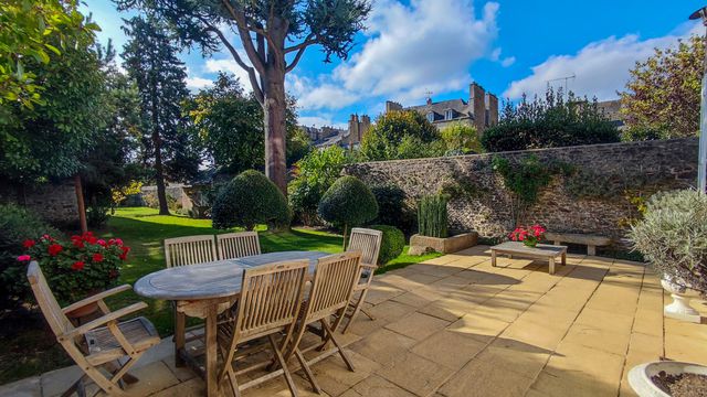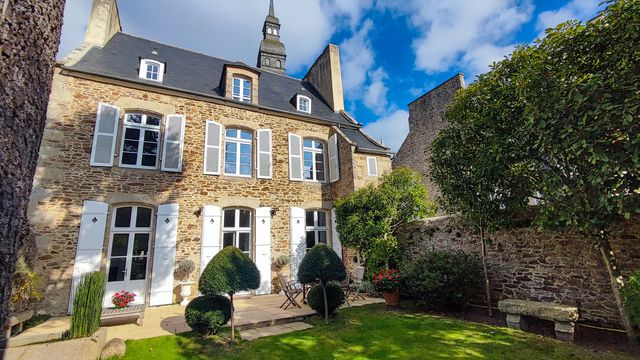 A40687JFD22 - Located on Dinan's most iconic square, a stone's throw from the English garden, this superb 18th-century mansion, carefully restored, combines historic charm with modern comfort. Set on approximately 800 m² of north-south facing land, it offers a sunny garden and terrace to the south, as well as a courtyard with private garage to the north — a rare asset in the town centre.