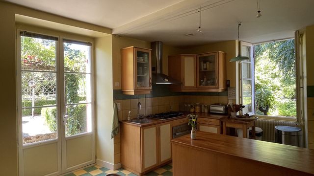 - Fitted kitchen with fireplace overlooking garden