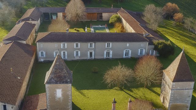 A37556NIE16 - Stunning 19th-century Charentaise estate near Barbezieux ideally located between Bordeaux and Angoulême. Set on 6 hectares with extensive outbuildings, a guest house, and a pool, this elegant property is currently a multigenerational home, but also offers exceptional potential for a wedding venue, gîte complex, or luxury retreat. Authentic charm, generous volumes, and serene surroundings make this a rare opportunity in the heart of the Charente.