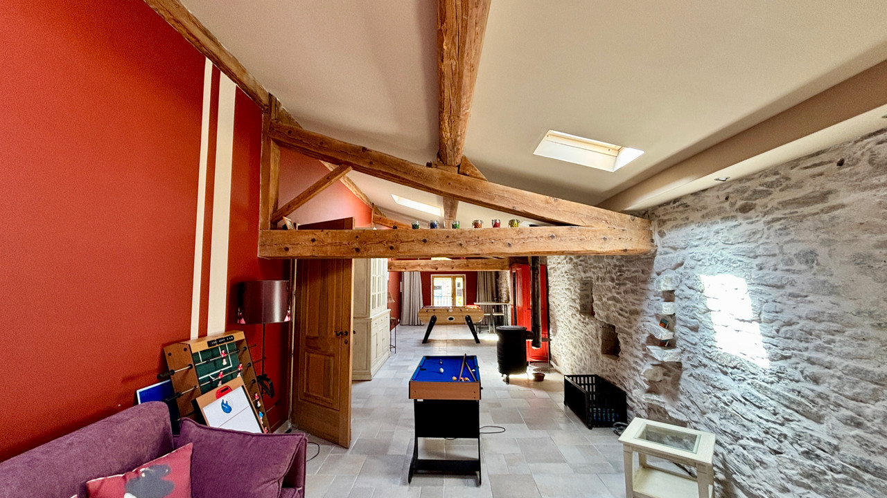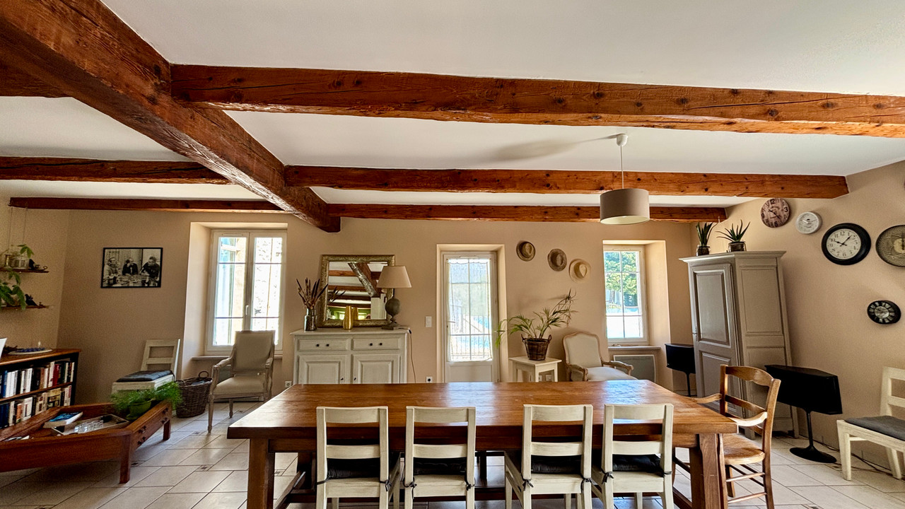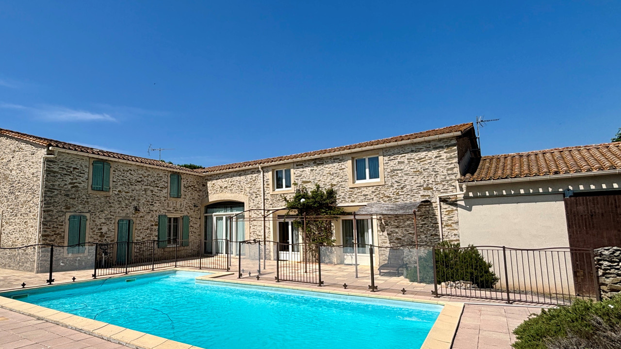 A37916PIC11 - Discover this former cooperage near the Canal du Midi and Carcassonne, beautifully renovated into a 444 m² residence combining authenticity and modern comfort. Sold furnished, it offers a spacious 81 m² living area with fireplace, five ensuite bedrooms, a 40 m² games/reception room, and two independent duplex apartments (56 m² each), ideal for guests or seasonal rentals. Outside, enjoy an enclosed garden, two shaded terraces, and a 10×5 m pool with valley views. A rear outbuilding offers additional development potential. Perfect as a large family home or a lifestyle property with rental income.