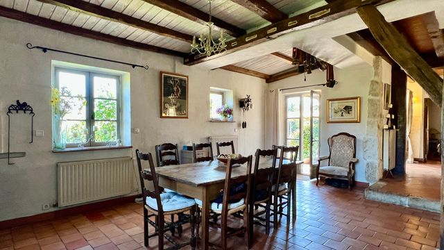 A40801GJP47 - Nestled in the heart of the French countryside, this stunning 5-bedroom stone home, built in 1996, offers a harmonious blend of timeless charm and contemporary comfort. Surrounded by one hectare of meticulously landscaped gardens and complemented by an additional three hectares, the property boasts panoramic views over rolling fields and tranquil pastures.