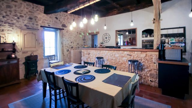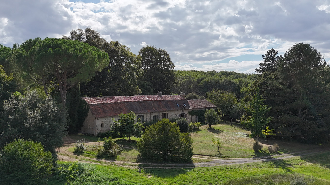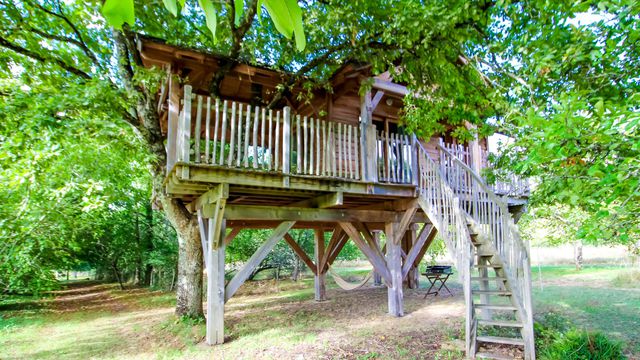 Today, it consists of a main house with three bedrooms (including one on the ground floor), a guesthouse, two tree houses, a building used as a laboratory and store, an adjoining barn, and another barn used for storage.
