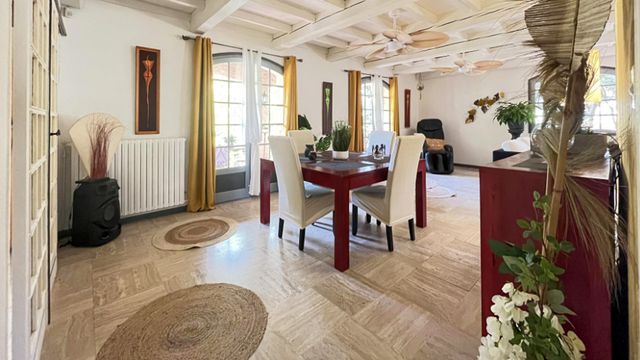The property is renovated to a very high standard throughout and offers the rental potential of a separate gite set in the grounds with its own space. The 5,000m2 squared gardens are landscaped and iclude palm and oaks with laurels, jasmines and honeysuckles. There is a stunning pool of 11 x 5m with its own pool house and a boules court.