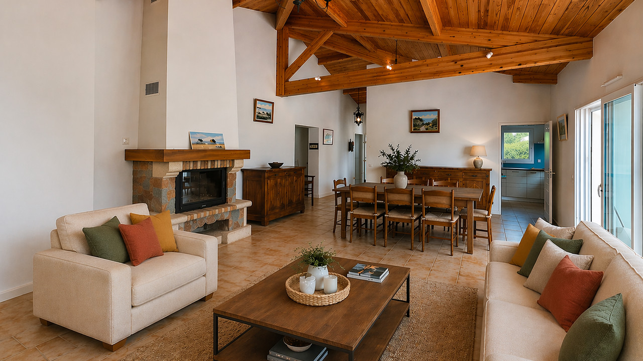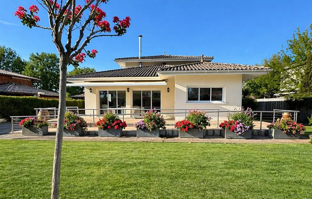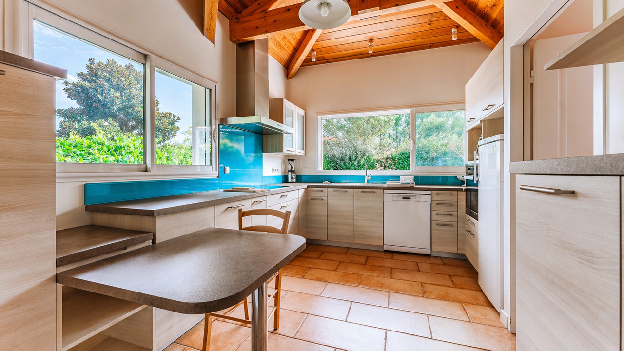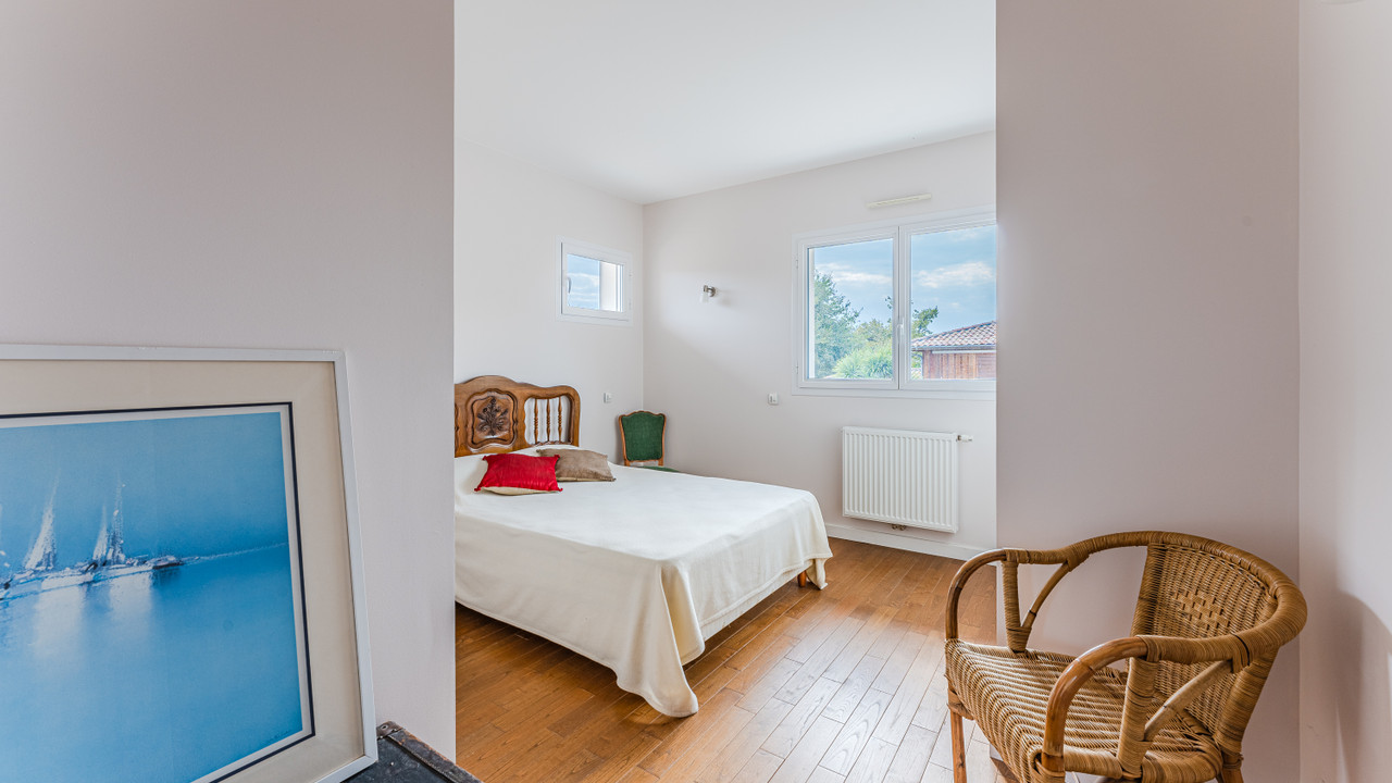 A44457EPR33 - This architect-designed villa, built in 2015 located in a calm residential area, offers 170 m² of living space with a total of six bedrooms three of which are on the ground floor which is also fully accessible to people with reduced mobility. The living area has beautiful cathedral ceilings, a fully equipped kitchen and an ajoining utility room. There are three shower rooms/bathrooms. Built with quality materials such as alimnium windows with intergrated electric stores, a heat pump, videophone, fibre, satellite. The gardens are private and well maintained with the posibility to add a swiming pool. You'll enjoy its proximity to the town center and all local amenities. The Atlantic beaches of Grand Crohot and the first oyster-farming villages are less than 10 minutes away by car. Bordeaux Airport is just 40 minutes away. Information about risks to which this property is exposed is available on the Géorisques website : https://www.georisques.gouv.fr