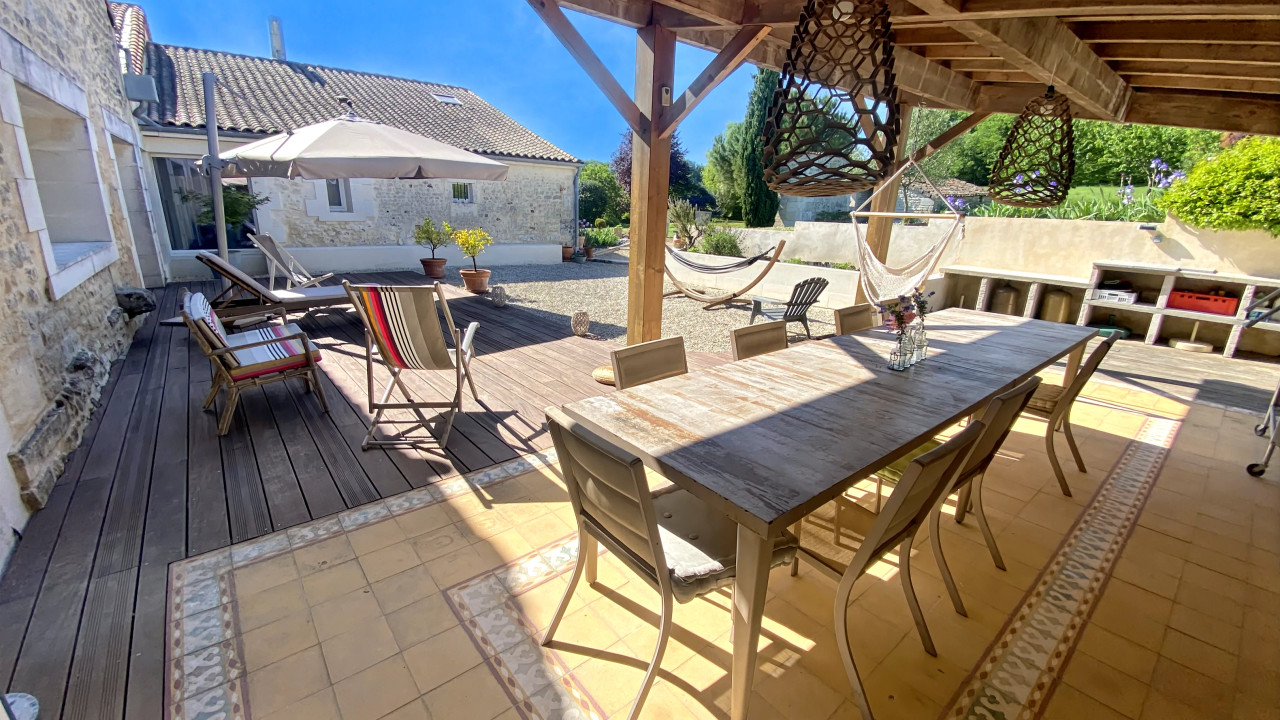 A44378EB17 - This rare ensemble of three houses offers a unique opportunity for those seeking a lifestyle change, income-generating project, or a spacious multi-generational family home. Across the three properties, there are a total of 8 bedrooms and an impressive 500m² of habitable space, complemented by two garages, additional outbuildings, and a private, fully enclosed garden. The setting is wonderfully peaceful, yet just a few minutes' drive from the charming spa town of Jonzac and its full range of amenities. Two of the houses are currently used as a comfortable family home, while the third operates as a successful seasonal rental, popular with visitors to Jonzac's renowned thermal spa. This provides an immediate and proven income stream. Whether you are looking to develop a gîte or bed & breakfast business, invest in a ready-to-run rental property, or create a flexible multi-generational living space, this property offers outstanding potential. Information about risks to which this property is exposed is available on the Géorisques website : https://www.georisques.gouv.fr