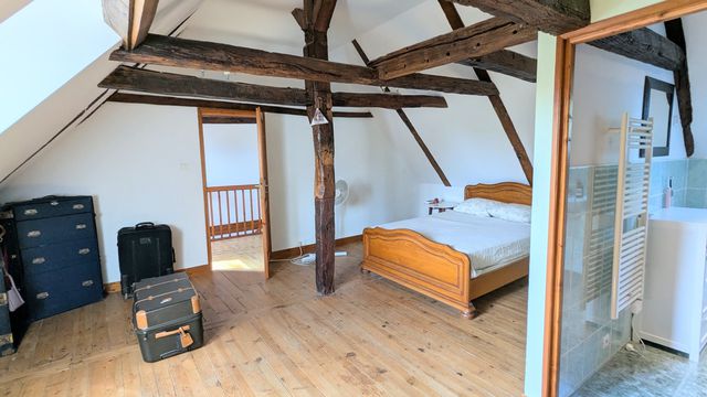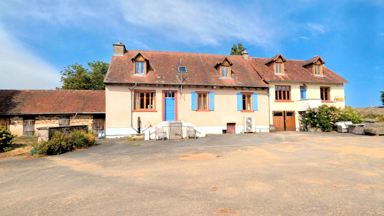A39579AMC87 - Set in a peaceful hamlet in Glandon, near St Yrieix la Perche, this unique farm property offers 12.9 hectares of land, ideal for horses. The main three-bedroom farmhouse blends rustic charm with modern comfort, while the attached two-bedroom gîte provides excellent rental potential. With barns, a piggery, and a partly built house, this is a rare opportunity for countryside living and investment.