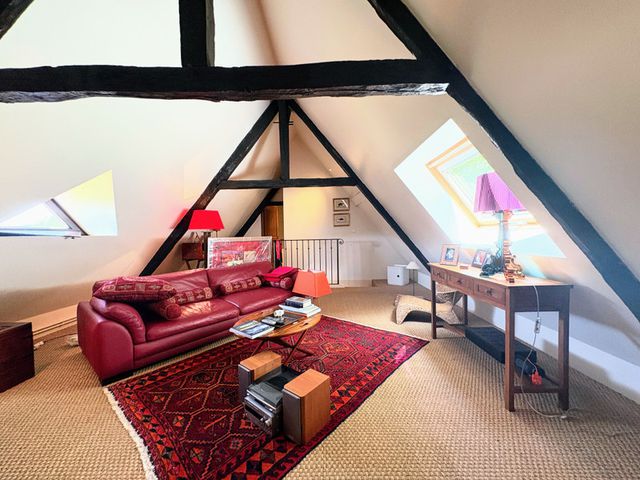Off the lounge is a stylish shower room with WC (6m²), and at the far end of the house is a charming ground-floor bedroom (24m²) with lovely garden views.