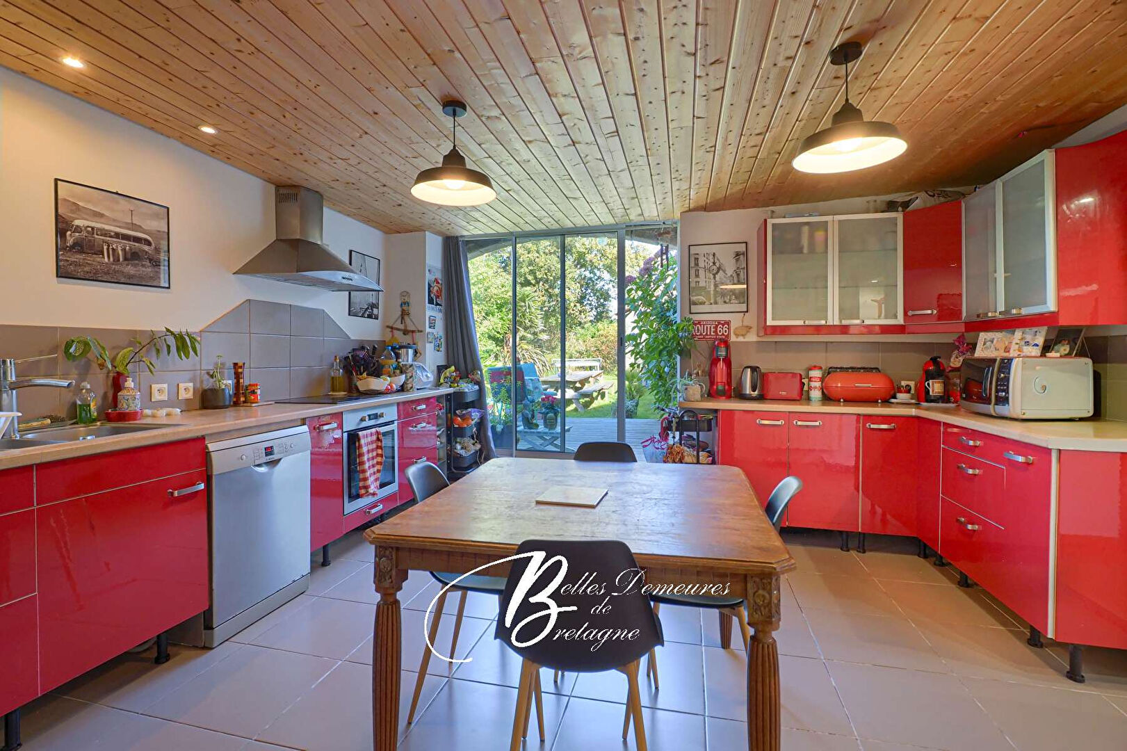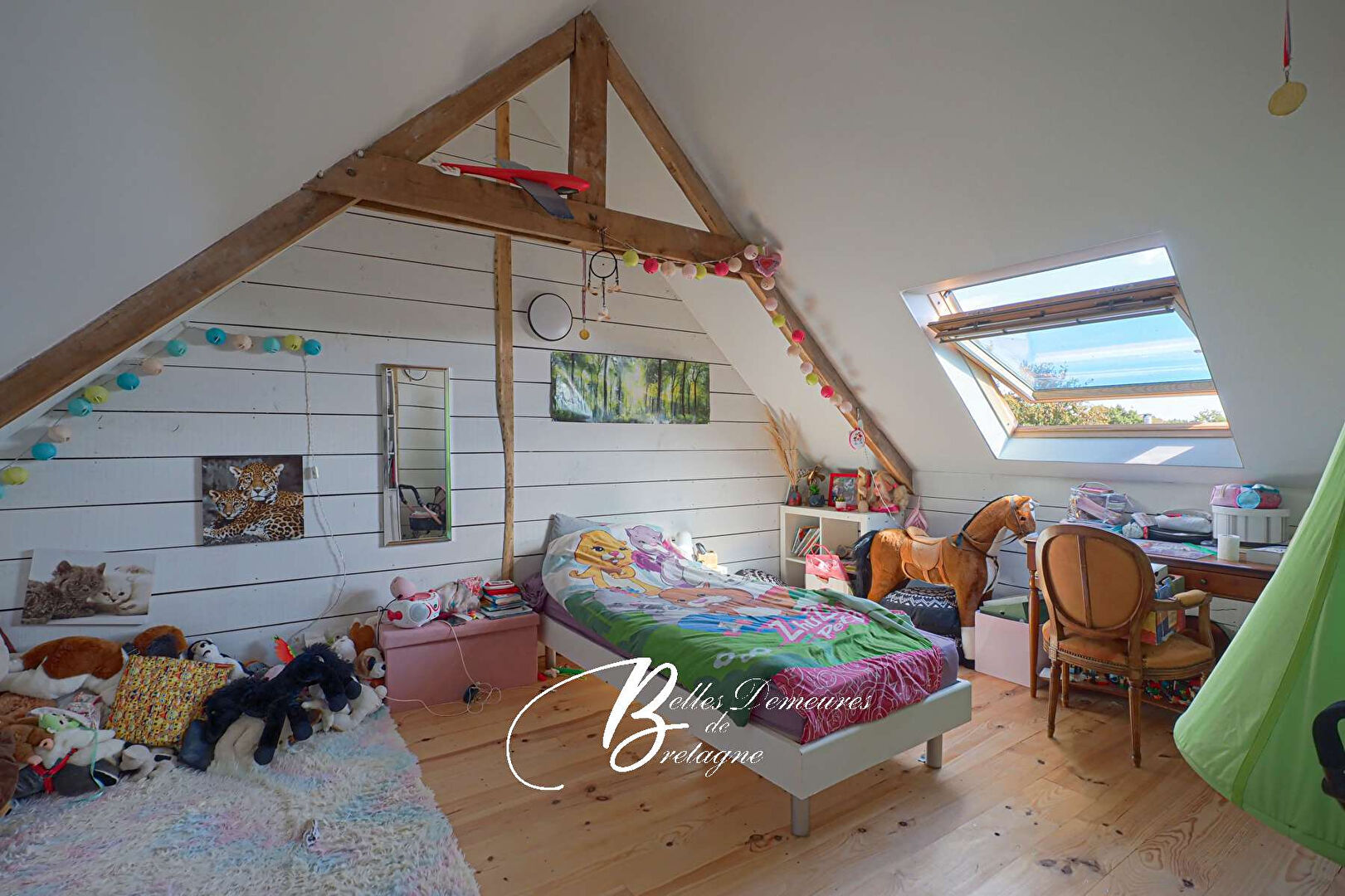 This stone residence retains all the charm of Breton buildings, with its exposed beams and its old cider press preserved in the kitchen. - Ground floor: large, inviting kitchen opening onto a terrace, spacious 70 m² living room, one bedroom, shower room, WC, and utility room.