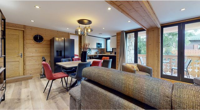 This is Apartment 3 "Les Arolles", a first floor, 2 bedroom apartment for sale in this completely remodelled development of the old Hotel Bellecote at the heart of the village. There are a total of 10 apartments in this small scale development all with top quality interior design and fittings. This particular property sleeps up to 8, is available now and ready for the next ski season. Contracts allow for personal use of up to 6 weeks during the winter and summer seasons as well as use out of season. Personal use can be changed on a year on year basis.