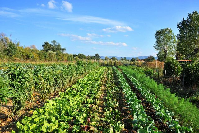 Das Anwesen umfasst 11 Hektar nach ökologischen Richtlinien bewirtschaftetes Land, darunter 2,5 Hektar IGT-zertifizierte Weinberge und rund 500 Olivenbäume.