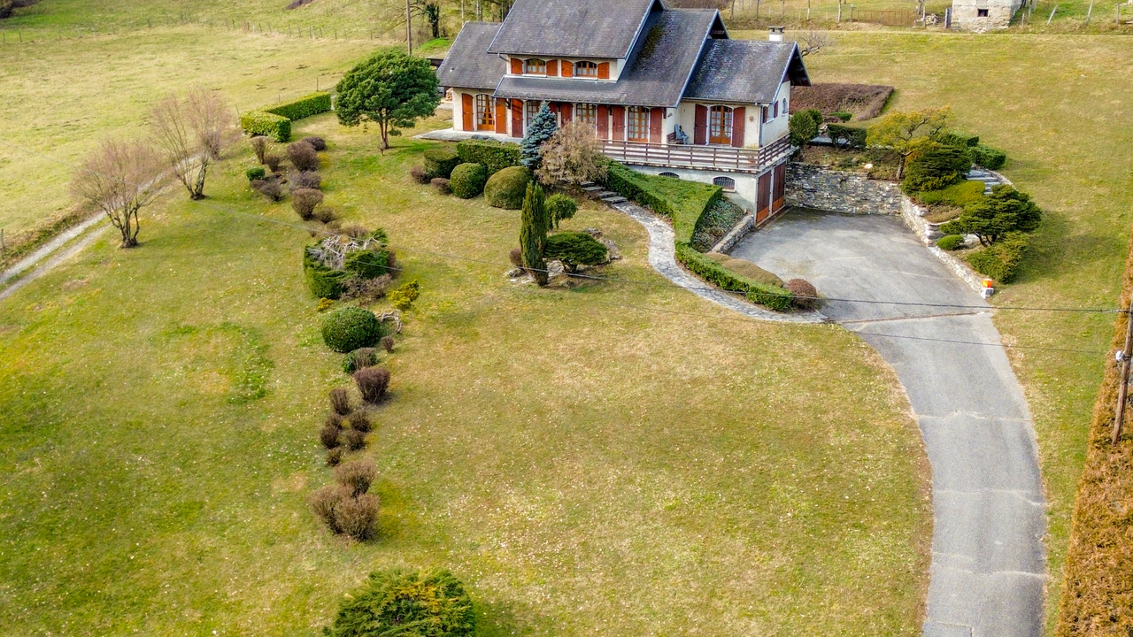 Positioned in an elevated setting and set back from a quiet rural road, the house enjoys uninterrupted views across the surrounding countryside and towards the snow-capped mountains. The beautifully maintained garden of 4,618 m² features a variety of fruit and ornamental trees.