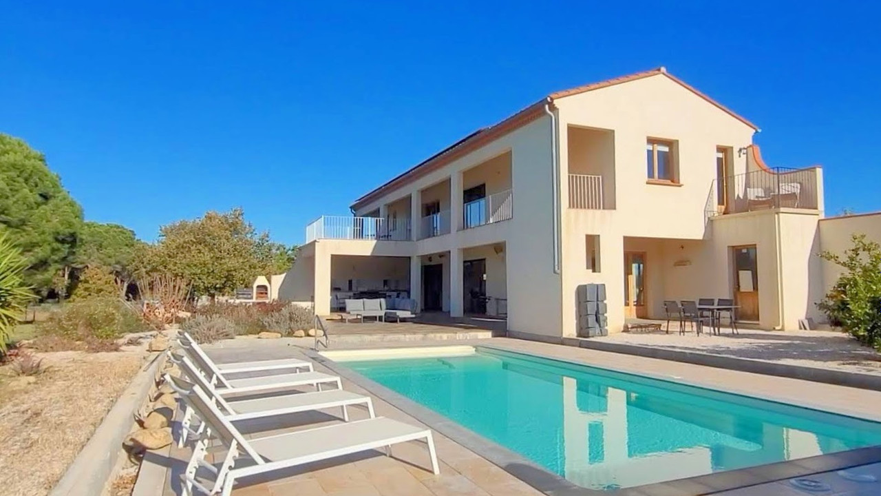 A41421AHA66 - Set just minutes from the vibrant centre of Laroque-des-Albères and 15 minutes from Perpignan and the Mediterranean coast, this 1,3 ha de jardins paysagers with AA energy rating combines privacy, space, and refined lifestyle. Approached via a sweeping driveway, it features a dramatic double-height living area with open-plan kitchen and dining, plus a ground-floor en-suite bedroom. Upstairs, two further en-suite bedrooms and a versatile open-plan office/living space (or potential fourth bedroom) open onto a full-length terrace with stunning mountain views. Set within 1.3 ha of landscaped grounds with mature trees, the villa offers seclusion. Outside, a terrace with outdoor kitchen, shaded and open seating, and a striking swimming pool provide the ultimate entertaining space. A six-car garage completes this rare, luxurious home near the coast.