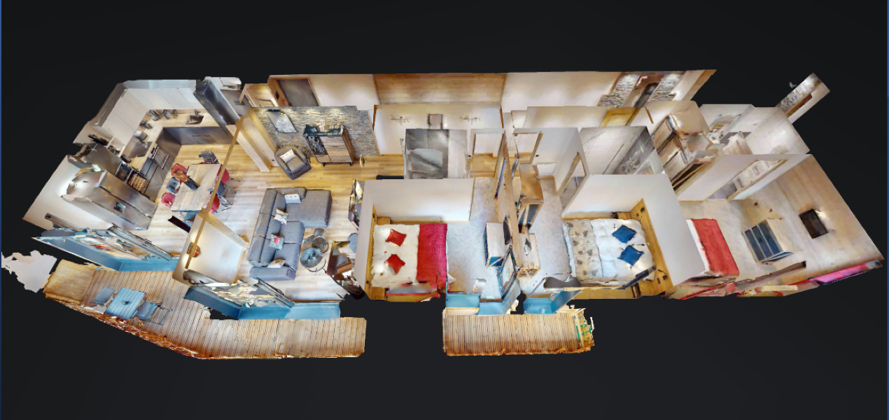 This is Apartment 8 , "Entre Le Lac", a 2nd floor, 3 bedroom apartment sleeping 8 people for sale in this completely remodelled development of the old Hotel Bellecote at the heart of the village. There are a total of 10 apartments in this small scale development all with top quality interior design and fittings. This particular property sleeps up to 8, and is available now and ready for the next ski season. Contracts allow for personal use of up to 6 weeks. Please ask for further details. Montchavin is a very pretty village that links into all of high altitude la Plagne, Les Arcs, Paradiski with over 70% of slopes above 2,000m.
