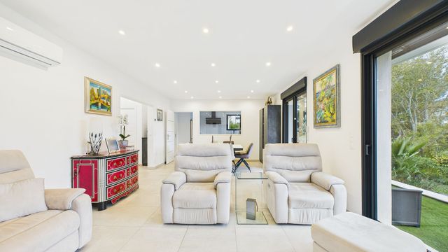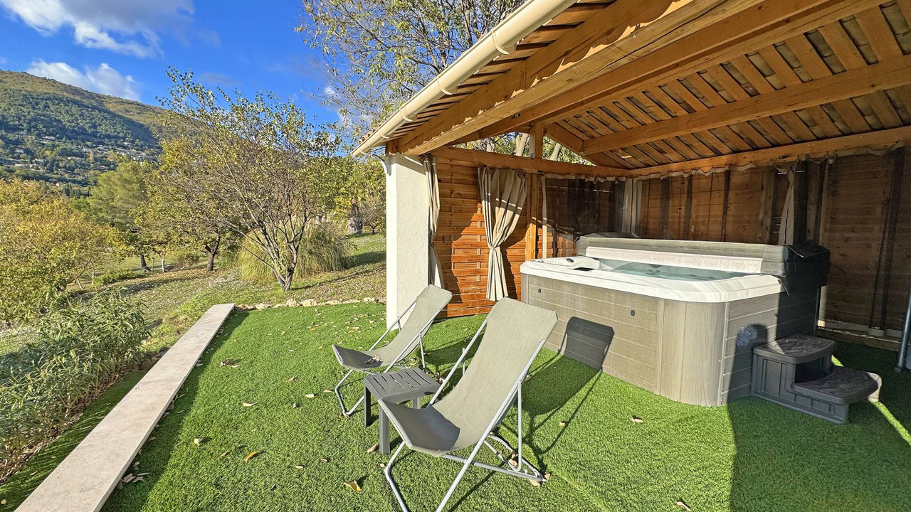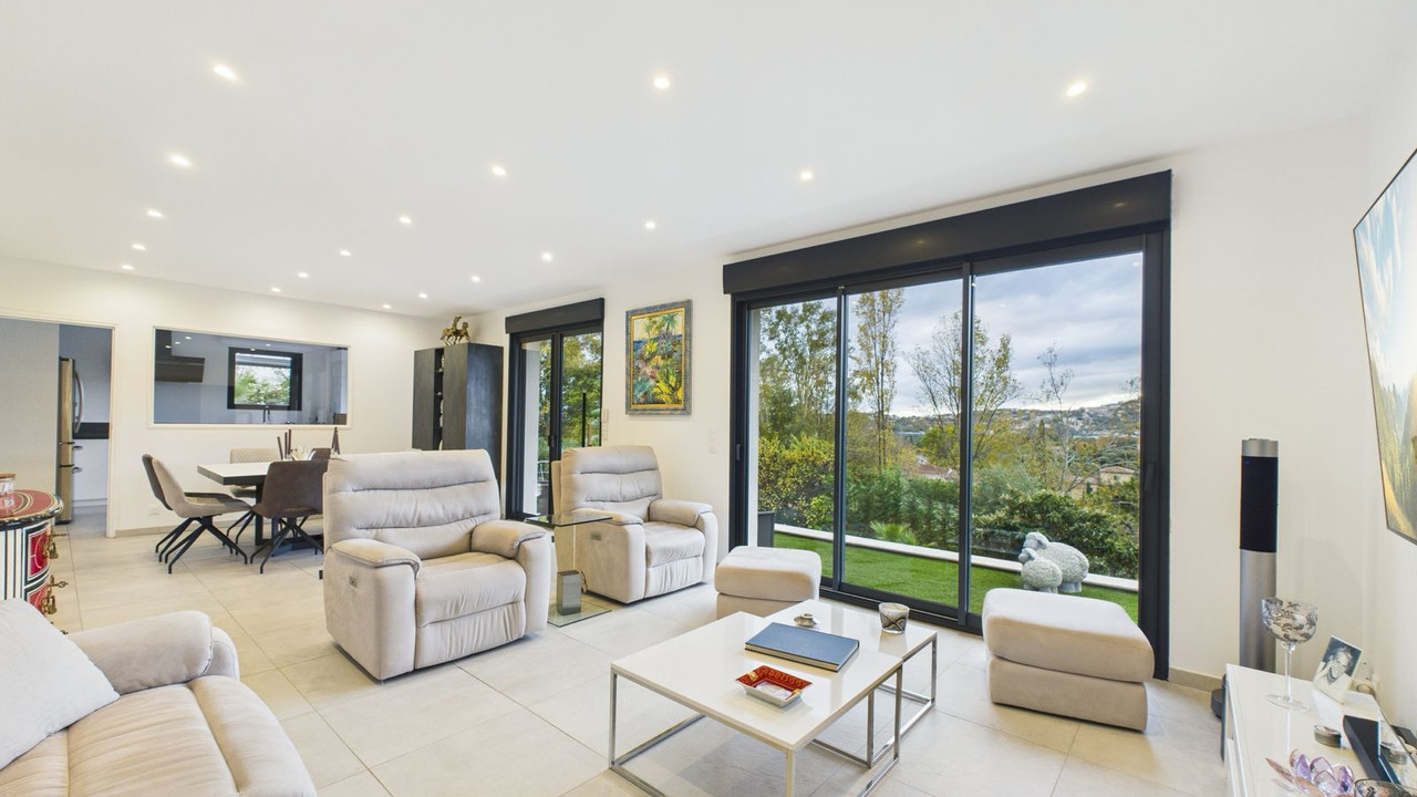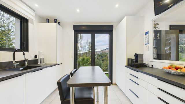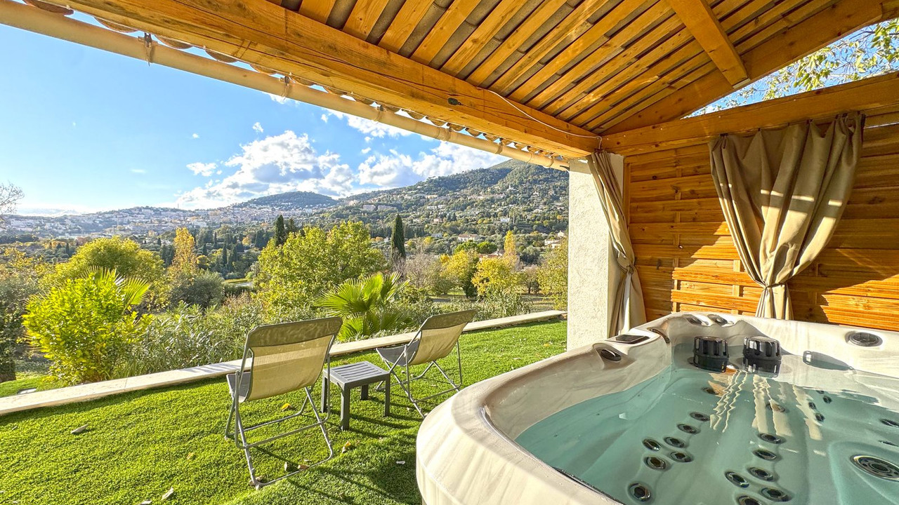 A42730SMG06 - Set in the sought after Peyloubet area of Grasse, this exclusive contemporary villa offers around 186 m² of elegant living space within landscaped grounds of approximately 4,270 m². Bathed in natural light, the main reception room opens onto a covered terrace ideal for outdoor entertaining, while the fully equipped independent kitchen and pantry combine style with practicality. The property features four bedrooms including a refined principal suite, several shower rooms, and family-friendly accommodation throughout. Outdoors, an inviting Bali tiled swimming pool, covered spa, barbecue terrace, garage, and multiple parking spaces complete this peaceful hillside retreat, an ideal Côte d'Azur residence for year round living or refined holidays.