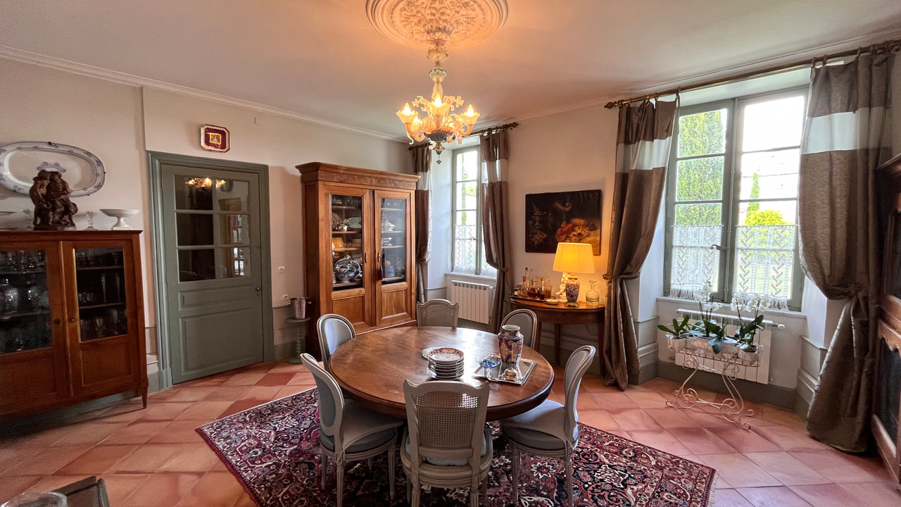 The property boasts 8 bedrooms, 8 bathrooms a cellar and an attic formerly used as staff quarters. The rear of the entrance hall opens out on to a fabulous garden with outdoor theatre, events barn, old pigeonnier and several storage buildings. There is also a 1 bedroom self contained studio, building formerly used as a restaurant and a further good sized outbuilding currently housing an antiques business.