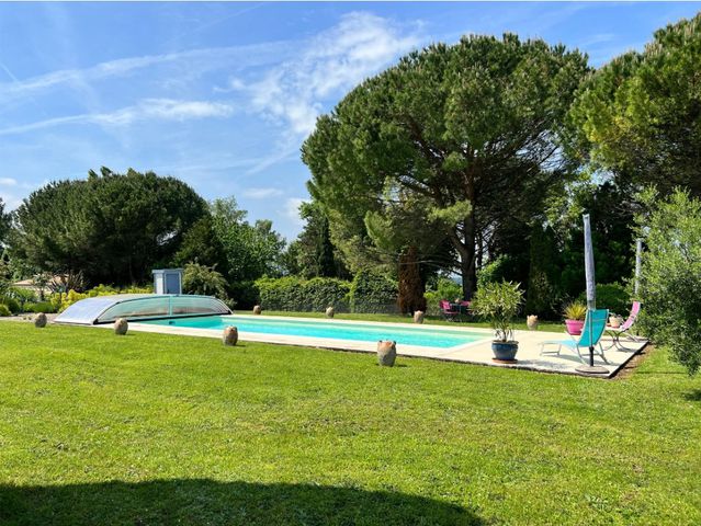 Nice village property with 4 bedrooms, office, swimming pool, garages and 2 hectares, 25 min from A