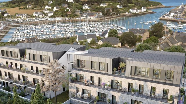 A23081HL22 - In the Côtes d'Armor region of Brittany, in PLÉNEUF-VAL-ANDRÉ, a historic family seaside resort, this magnificent residence is part of a 3-storey development overlooking the port of Dahouët. 27 flats from T2 to T5 with terraces and balconies and/or small private gardens. Walking distance to local shops and the Saturday market on the port. Sandy beaches, coastal path, cycling, fishing, 18-hole golf course, spa, casino. Close to Rennes and ferries from Saint-Malo to Jersey, Plymouth and Portsmouth.