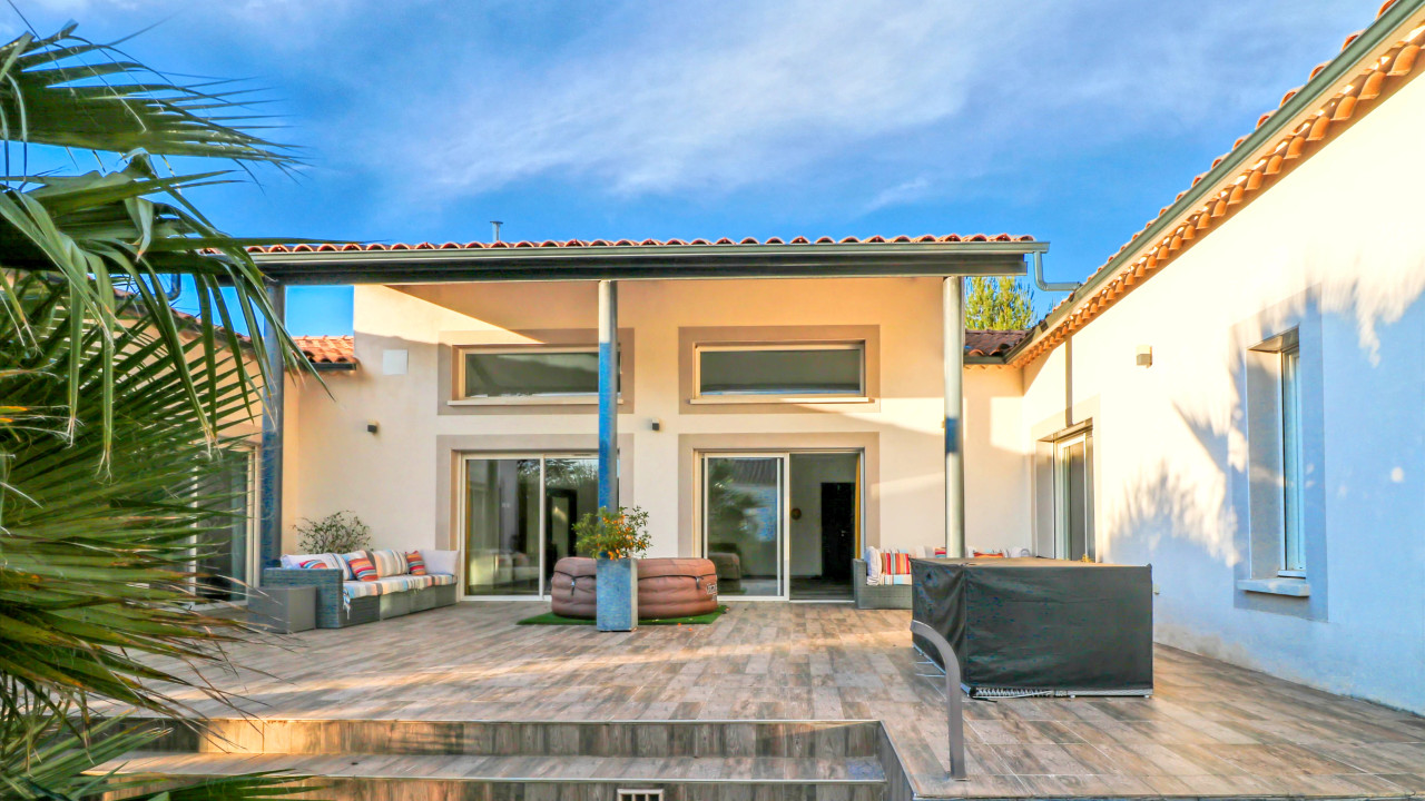 The villa offers 210 m² of living space plus a 35 m² artist's studio, opening onto a landscaped 962 m² garden with a swimming pool featuring an integrated jacuzzi and a large tiled terrace. Tthis is a rare property combining modernity, volume, and high-quality living in one of the region's most desirable settings.