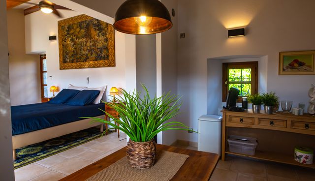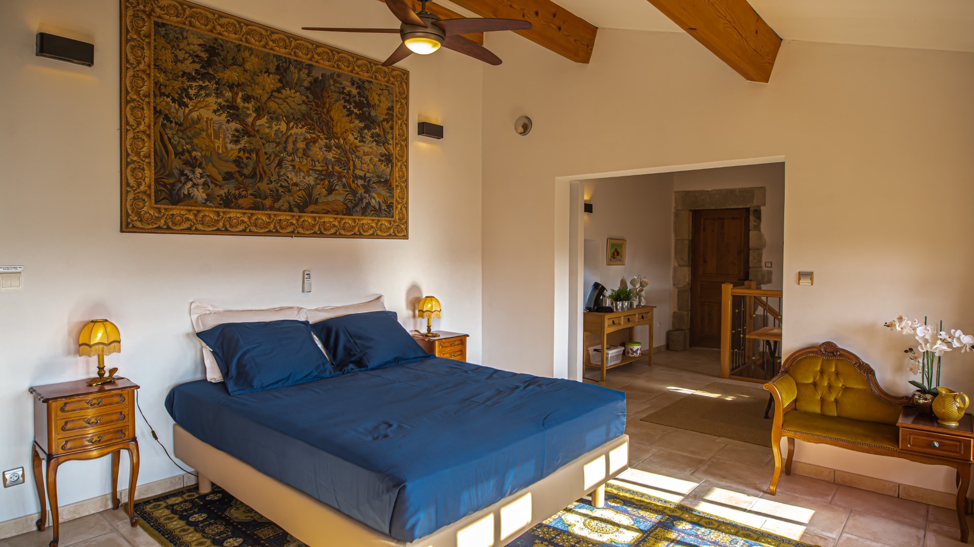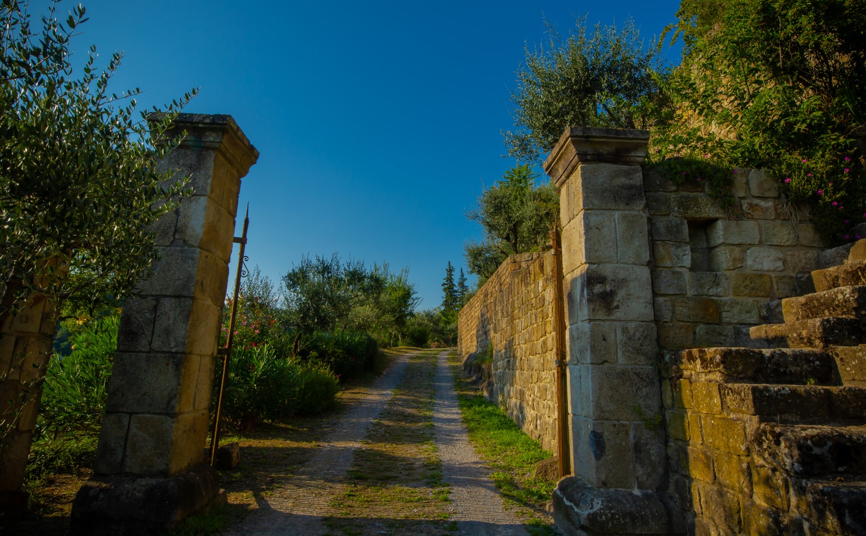 The charm is evident from the moment you arrive. A wrought iron gate opens onto a winding path that reveals the beautiful building standing proudly on the hill, with over 4,000m² of land and a 180° view.