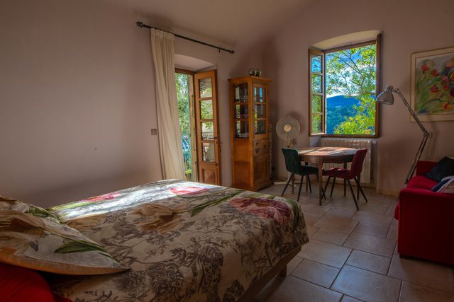 Adjacent to the building, a 110m² stone village house in need of complete renovation, with a garden overlooking the valley, completes the ensemble.