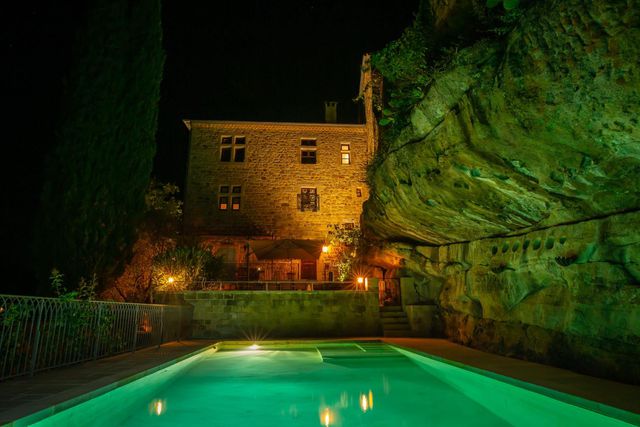 With its panoramic view of the valley, sunny terraces and swimming pool set into the rock, this rare property combines heritage and art de vivre.