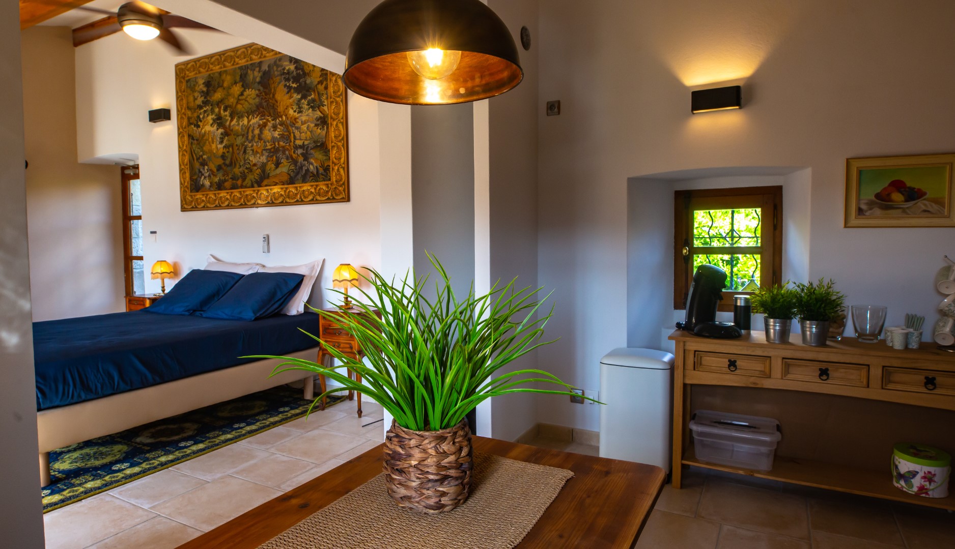 One of the guest rooms is integrated into a studio opening onto the west-facing terrace with direct access to the secure swimming pool. This harmonious layout preserves everyone's privacy while allowing them to fully enjoy the conviviality of the common areas.