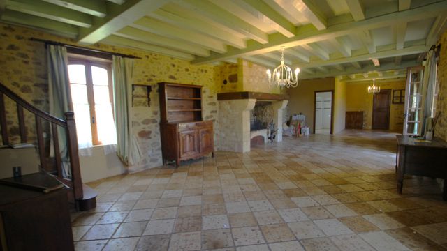 It consists of a very large living/dining room with a big fireplace, a separate kitchen with a pantry, and a shower room with WC.