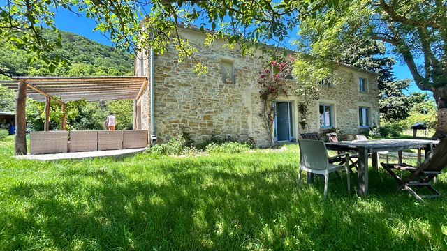 Benefitting from seven bedrooms and four shower rooms this property offers plentiful accommodation. The spacious yoga studio/reception room (37m²) and yoga deck lend this property to be a magnificent wellness retreat. A modern fitted kitchen/dining room opens onto a terrace with valley views, and a dual-aspect sitting room leads to another terrace . An additional room can be an office or extra accommodation.