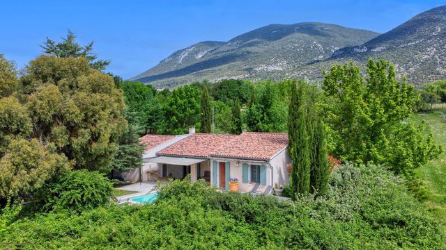 RUSTREL, LUBERON – RARE FIND: Beautiful single-storey home with garden, pool and guest chalet, amids